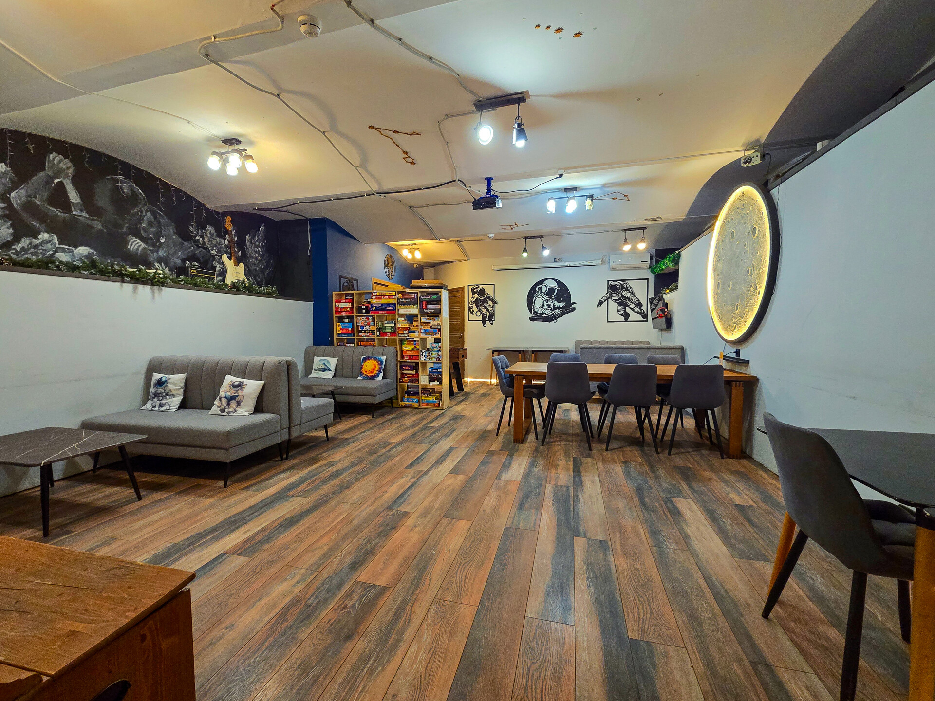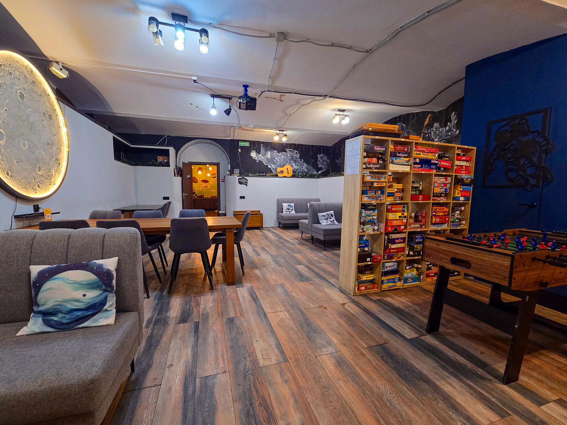 Наше антикафе одно из самых больших в Москве — его площадь более 280 м2. Поэтому его удобно использовать абсолютно для разных целей, будь то проведение Дня рождения, большого корпоратива или в качестве коворкинг-зоны.