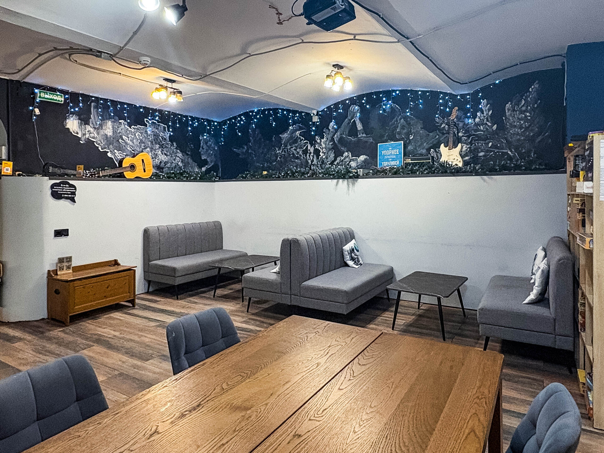 Наше антикафе одно из самых больших в Москве — его площадь более 280 м2. Поэтому его удобно использовать абсолютно для разных целей, будь то проведение Дня рождения, большого корпоратива или в качестве коворкинг-зоны.